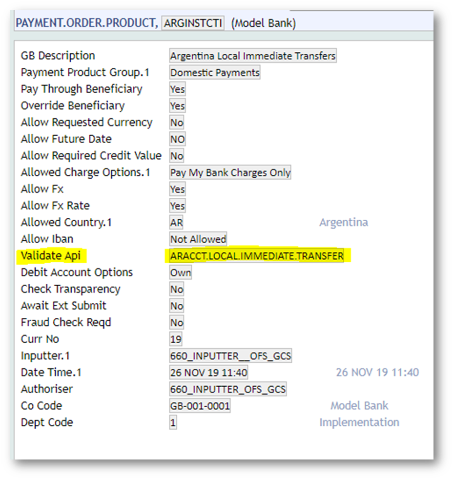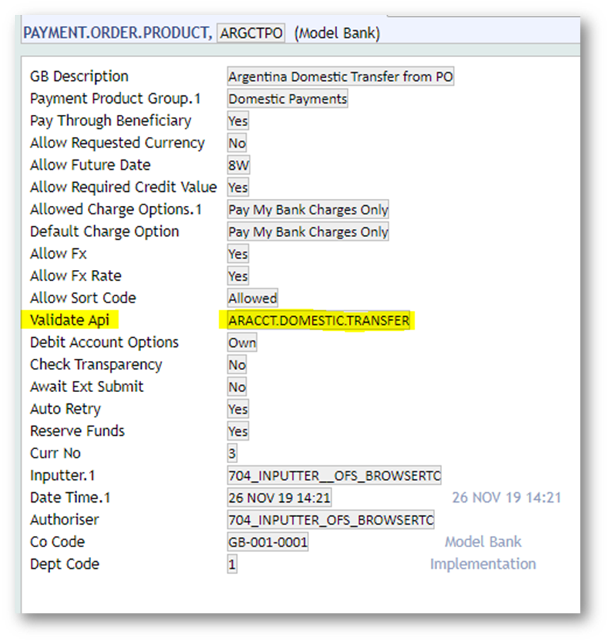- Attach the routine in the Validate Api field in the PAYMENT.ORDER.PRODUCT application which is configured for the PO versions.