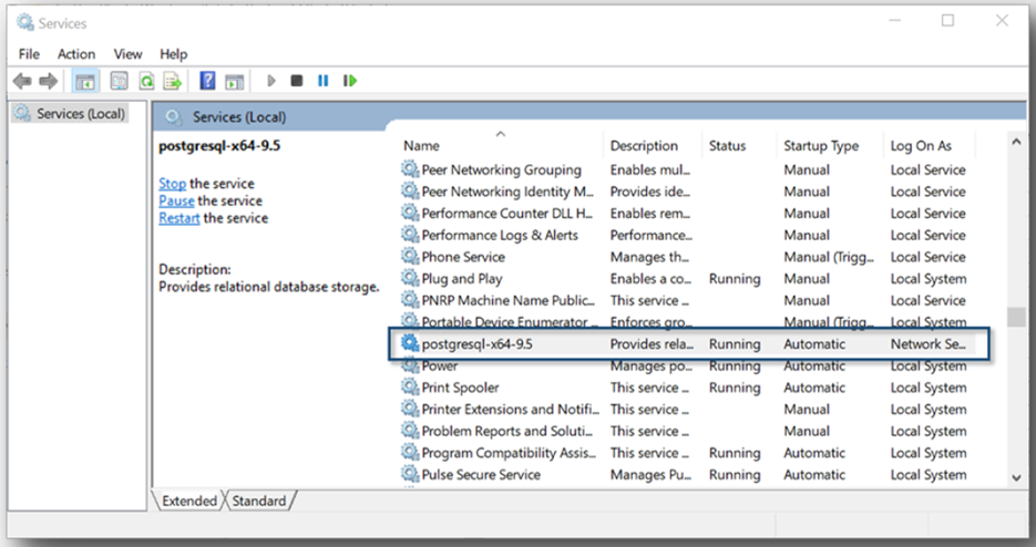 To force this change to take effect we just need to restart the PostgreSQL Windows Service.