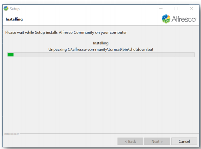 - Ready to Install: Setup is now ready to begin installing Alfresco.