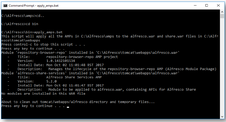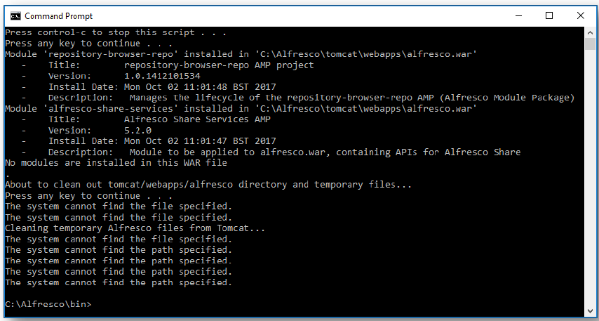 - Navigate to the Alfresco bin folder.