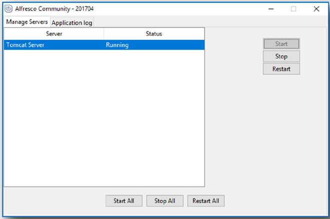 - Select Microsoft Windows Start button > All Programs > Alfresco Community > Alfresco Community Manager Tool.
