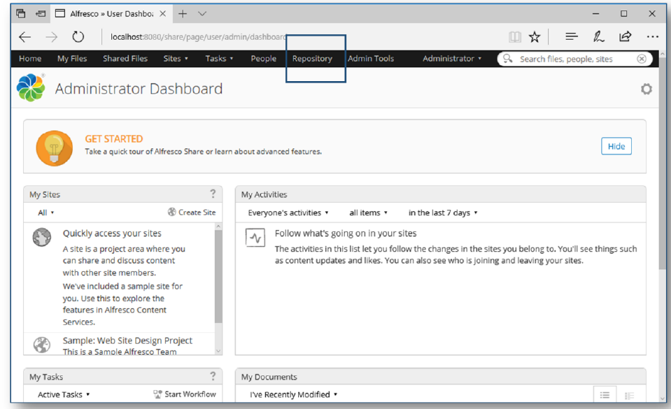You are now ready to install Alfresco which is an example of a typical CMS system.