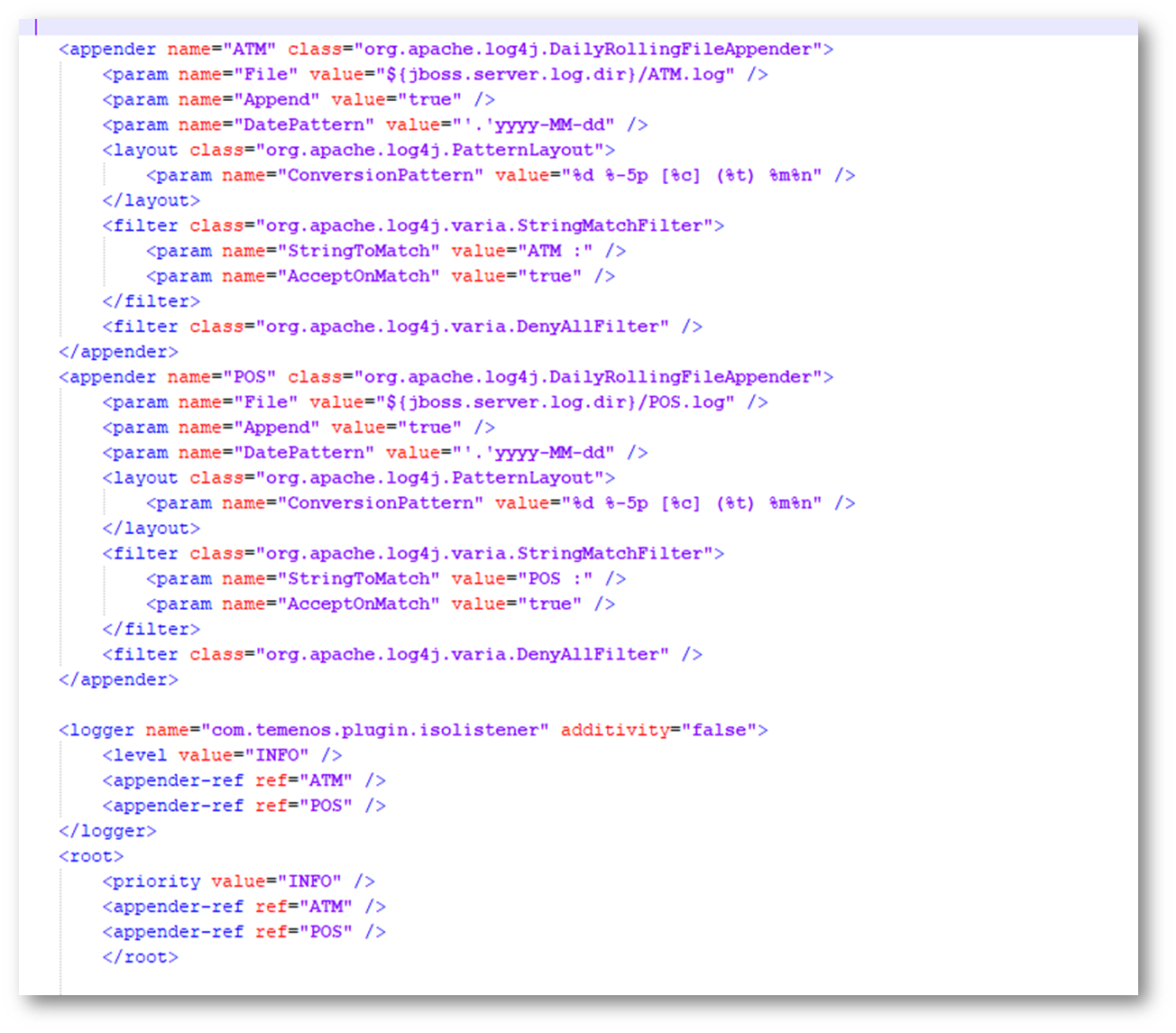 <appender name="POS" class="org.apache.log4j.DailyRollingFileAppender">