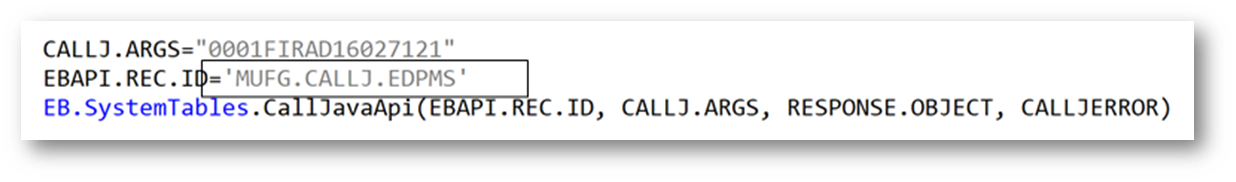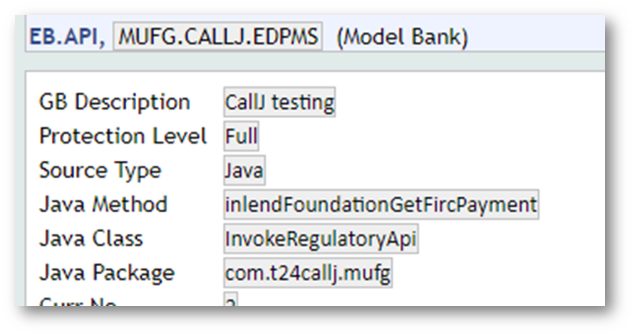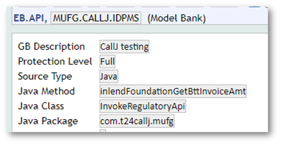 - Create records in the EB.API application for the java methods which are present in InlendInvokeRegulatoryApi.jar.