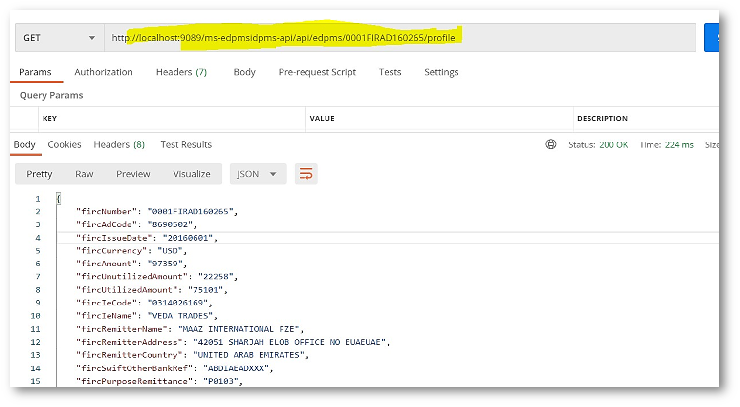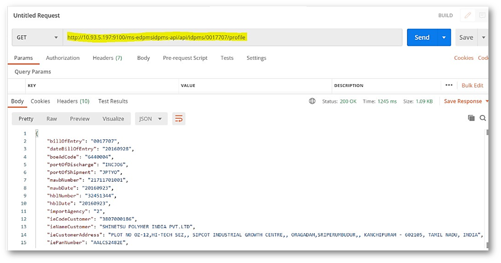- Idpms: http://{hostname:port}/ms-edpmsidpms-api/api/idpms/{billofEntry}/profile