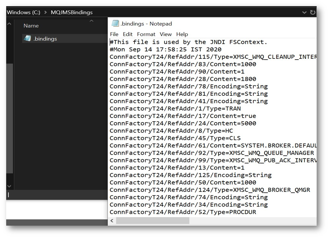 Follow the instructions below to create the .bindings file in MQ.