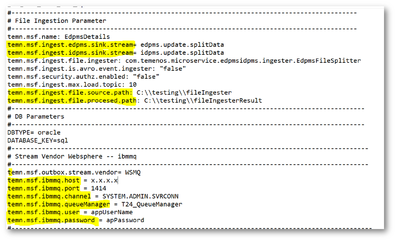 - The Ms-edpmsidpms-file-ingester.war will hold the db and file ingester related configurations. The file ingester configurations include the location of the input file, processed files and the stream vendor details. Files configured by the client: