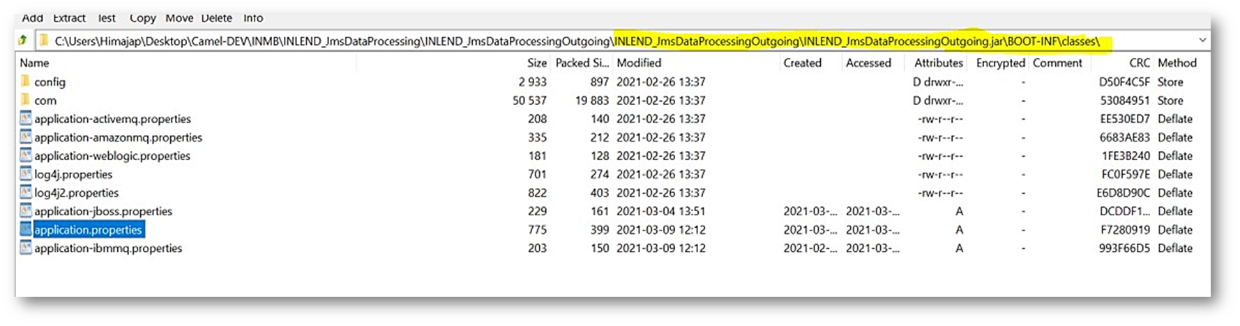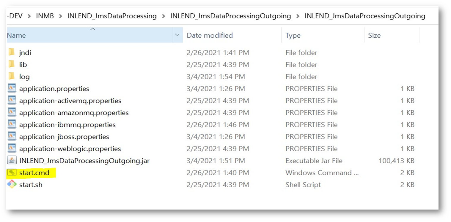 - Once the ear is deployed successfully, extract the contents of the INLEND_JmsDataProcessingOutgoing.zip folder into the local machine folder.
