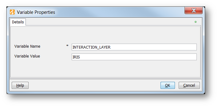 - Edit Variable Value to be: IRIS.NOTE: This variable defines the interaction layer used for connecting with Temenos Transact. By default, this is IRIS. If necessary, TWS services may be developed on request. To connect to local Data Sets instead of Temenos Transact, INTERACTION_LAYER’s value has to be set to “TEST”.