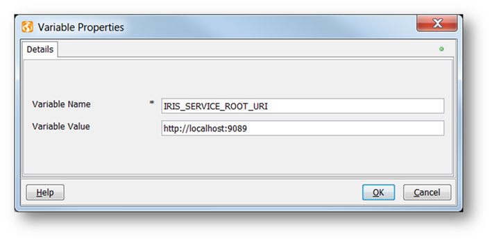 - Edit Variable Value to be the ip and port used in your environment.NOTE: This variable defines the IRIS Service Root URI, in other words the address of the application server that you plan to use. By default, it connects to your locally installed Temenos Transact’s application server, hence the value http://localhost:9089. If necessary, you may change this value and/or the port number according to the URI of the application server you plan to use. Make sure that you enter the correct address to the Temenos Transact application server and the correct port number!
