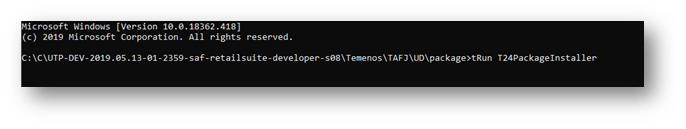 - The next step is to execute the packageDataInstaller command to get the exit point and flows created in Temenos Transact.