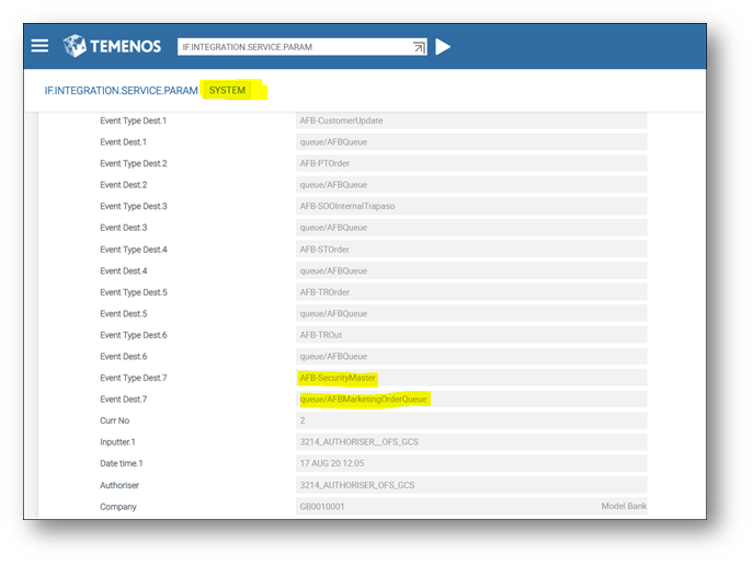 Once the deploying the AFB events is done, the following Temenos Transact configurations have to be done:
