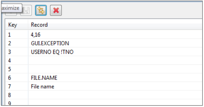 1. Launch DBtools under the TAFJ_HOME/bin directory and run the tJed F.ENQUIRY EXCEPTION command.
