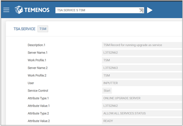 • TSM understands that these are the only servers that can be used for online upgrade service process and not for any other Temenos Transact services.