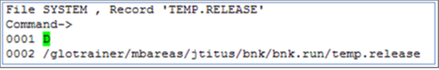 The temp.release record should have two entries. Line 1 - D (directory) and Line 2 - path of the temp.release directory.
