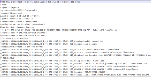 - After this step, the Temenos Transact system becomes online after a manual verification (if required). This allows all services in TSM to run in all active servers. One of them is T24.UPGRADE service, which continues to upgrade Temenos Transact system by releasing secondary data items (remaining data items from TEMP.RELEASE).