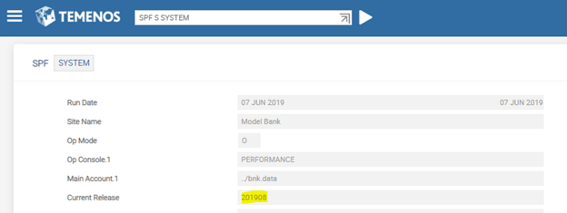 The T24.UPGRADE service also updates the SPF SYSTEM record as shown below.